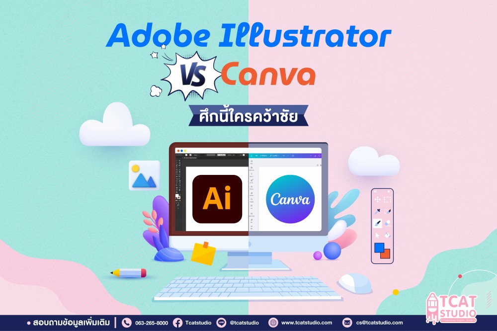 ช่วงไม่กี่ปีที่ผ่านมาเราจะเห็นได้ว่า มีคนใช้ Canva มากขึ้นเรื่อยๆ เนื่องจากงานบางงาน Canva ก็สามารถตอบโจทย์และมีการทำงานได้อย่างมีประสิทธิภาพได้โดยง่าย ในขณะเดียวกัน Adobe illustrator ก็ยังจำเป็นสำหรับงานที่ต้องยกระดับการสร้างสรรค์มากขึ้น วันนี้ Tcatstudio จะพามาดูความแตกต่างในการใช้งานระหว่าง Canva และ Illustrator กันค่ะ